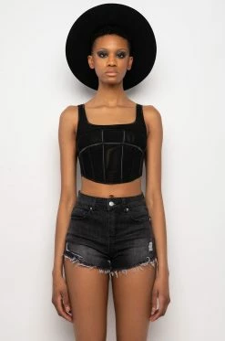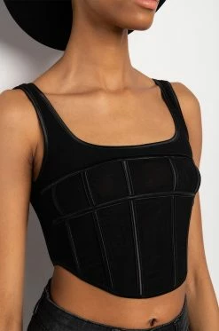 Keep all eyes on you in The AKIRA Label All On Me Corset Top! This cropped corset features a sheer mesh base, tank straps, satin-trimmed boning for structure, a pointed hem, and a back zipper closure. Pair this piece with fitted bottoms and patent pumps for a sexy going-out look.