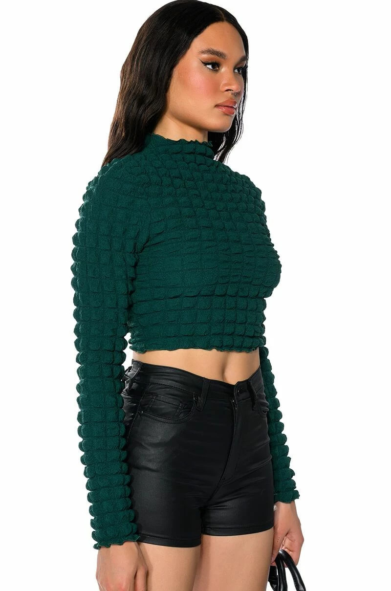 The AKIRA Label Anything But Basic Textured Long Sleeve Top features a stretchy, textured fabrication, three-dimensional cubed construction, a mock neckline, and long sleeves. Complete with a pull-on bodycon fit. Pair with relaxed cargos or denim, and heeled booties to finish the look.