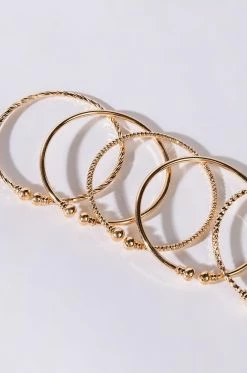 The AKIRA Label Baby Bangle Set features six one-size-fits-most bangles complete with a faux gold metallic base, unique textured detailing, and circular end caps. Wear them separately or stack them to add some extra-ness to your ensemble!