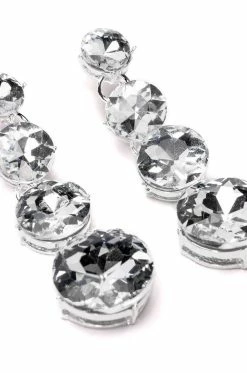 The AKIRA Label Better Believe Embellished Drop Earrings are made from a faux silver metal base and feature a drop silhouette with gem accents of increasing size. Complete with post back fastenings.