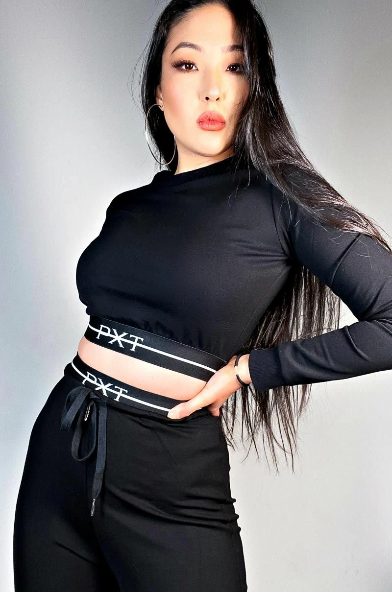 The Cassidy PXT Crop Top is perfect for a rainy day in. Featuring long sleeves, bottom waistband, and drawstrings.