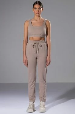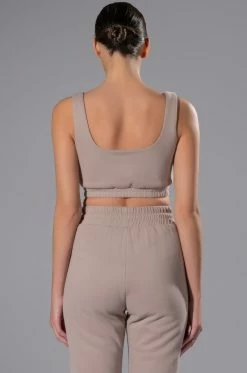 The AKIRA Label Casual Casey Crop Bralette is made from a cozy cotton fabrication and features a scoop neckline, wide tank straps, a cropped silhouette, and a ruched elastic hem. Pair this piece with the coordinating AKIRA Label Casual Casey Button Down Sweatshirt and Casual Casey Fit Joggers to complete your athleisure look.