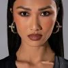 The AKIRA Label Catty Rhinestone Embellished Chunky Hoops are made from a faux gold metal base and feature fierce, rhinestone-embellished tiger posts with textured dangle hoops. Complete with post back fastenings.