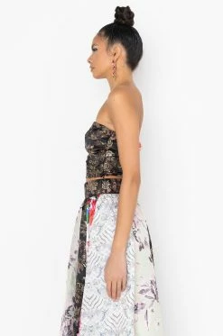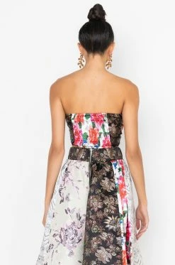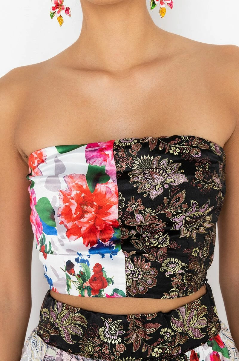 The AKIRA Label Dolce Far Niente Top is made from a satin fabrication, and is complete with block design with floral print and a vintage floral print. This top features a strapless design, and a shirred elastic back. Style with the matching AKIRA Label Dolce Far Niente Skirt!