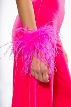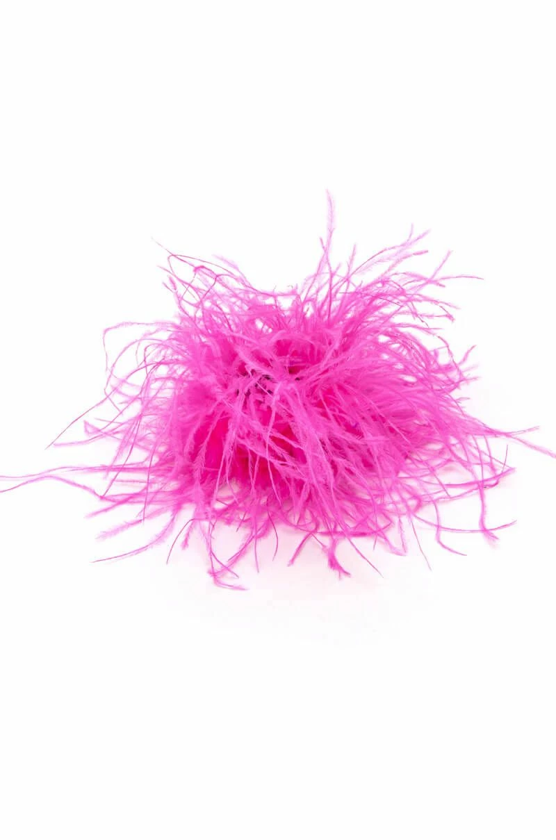 The AKIRA Label Gatsby Feather Slap Bracelet in Pink features a flexible velvet base, feminine real feather detailing, and a slap bracelet style closure. Pairs perfectly with your fave special occasion pieces. Or purchase two and create faux cuffs on long sleeve tops and dresses!