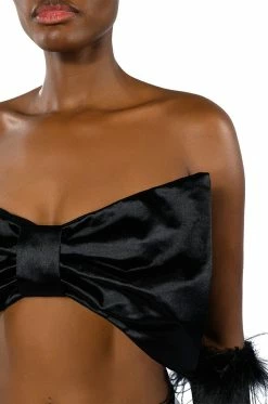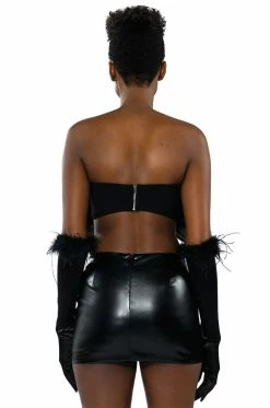 The AKIRA Label Gift For You Tube Top And Gloves Set is made from a soft fabrication and features a strapless sweetheart neckline, a large, reinforced bow front detail, a cropped silhouette, and an exposed back zipper closure. Complete with feather cuff elbow-length gloves. Pair this set with pant boots to finish off your sexy sweet look.