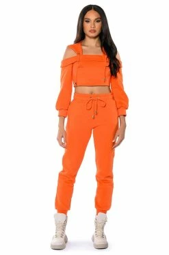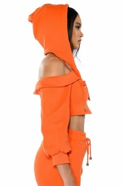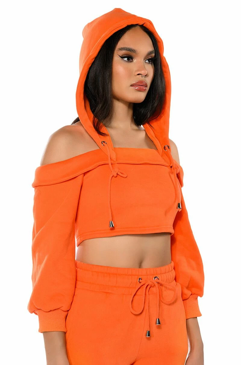 The AKIRA Label Guilty By Association Cropped Off The Shoulder Sweatshirt is made from a soft cotton fabrication and is a different take on your typical athleisure wear. This sweatshirt is complete with a drawstring hoodie, cold shoulders with collared detailing, ribbed wrists, cropped length, and an exposed back zipper closure. Pair this hoodie with the matching AKIRA Label Guilty By Association Jogger to complete your look!