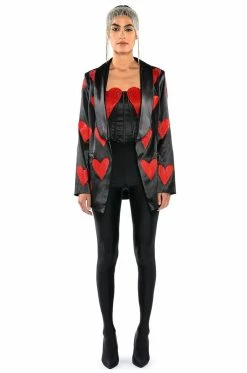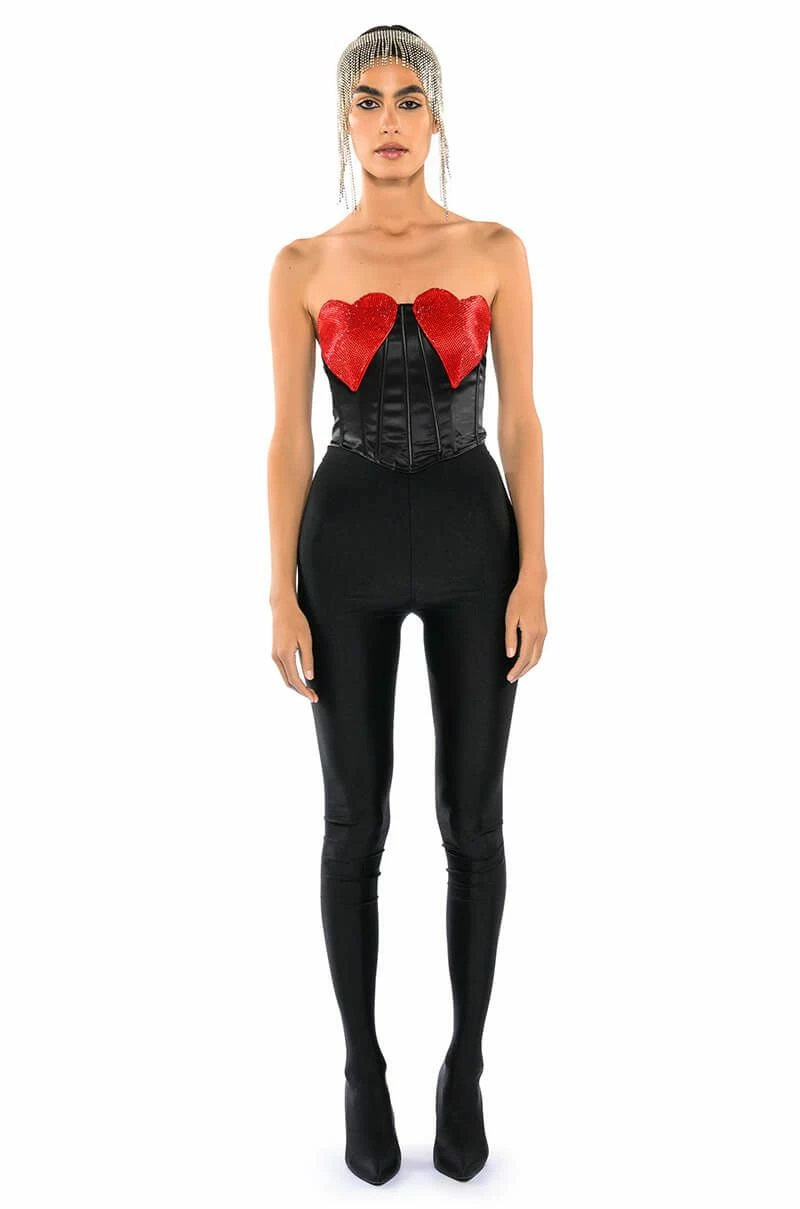 The AKIRA Label Heart On For You Corset Top features a strapless neckline, inner elastic for a secure fit, boning for structure, a cropped cut, a curved hem, and an exposed back zipper closure. Complete with dual rhinestone-embellished hearts decorating the bust. Style this piece with the coordinating AKIRA Label Heart On For You Blazer for a look you’ll love!