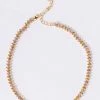 The AKIRA Label Ice On My Necklace is a luxe pave rhinestone link choker necklace made with a faux gold base and an adjustable lobster claw fastening.