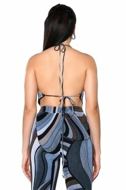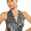 The AKIRA Label It Girl Corset Tie Top is made from a lightweight, lace textured base fabrication and features cascading cowl neckline, a halter tie-back neck, and a cropped silhouette. Complete with a pointed bottom hem, a gorgeous open back, and a tie-back closure. Style with the matching bottoms, The AKIRA Label It Girl Wide Leg Palazzo Pants, The AKIRA Label It Girl Duster, and platform heels for a finished look!