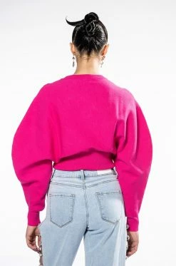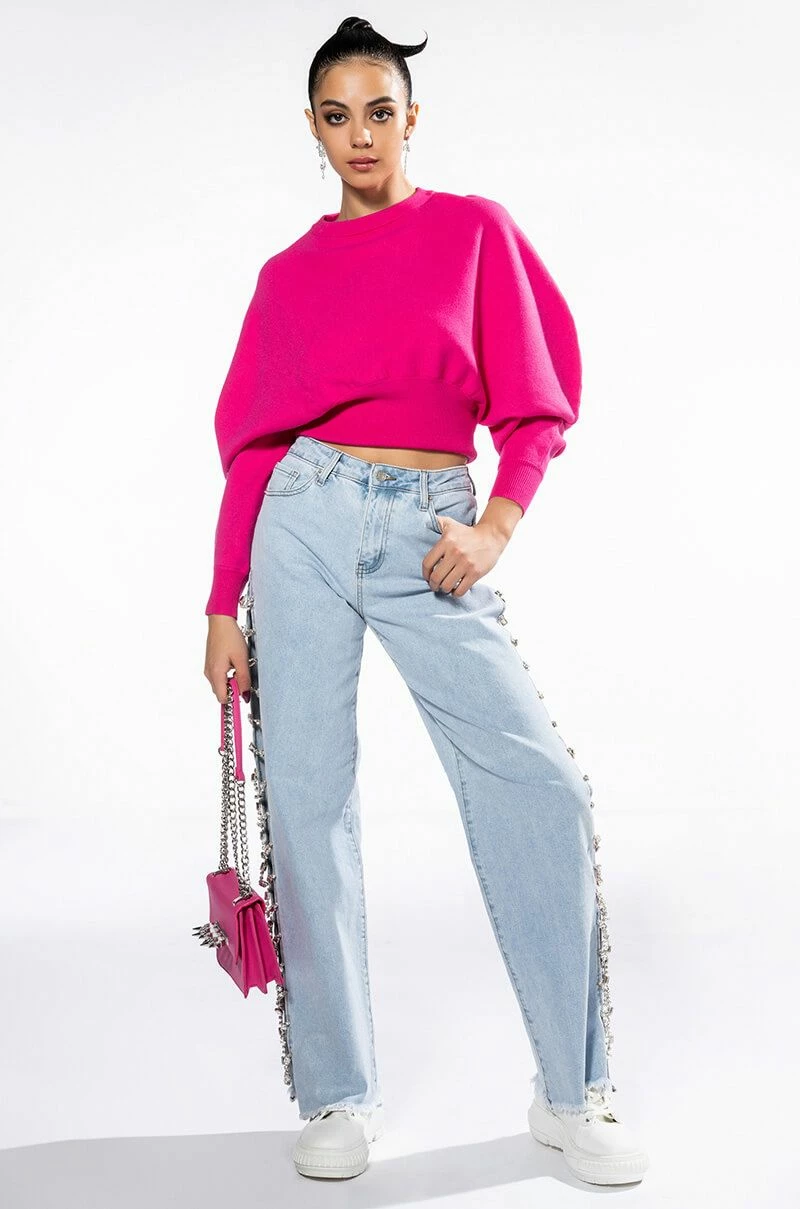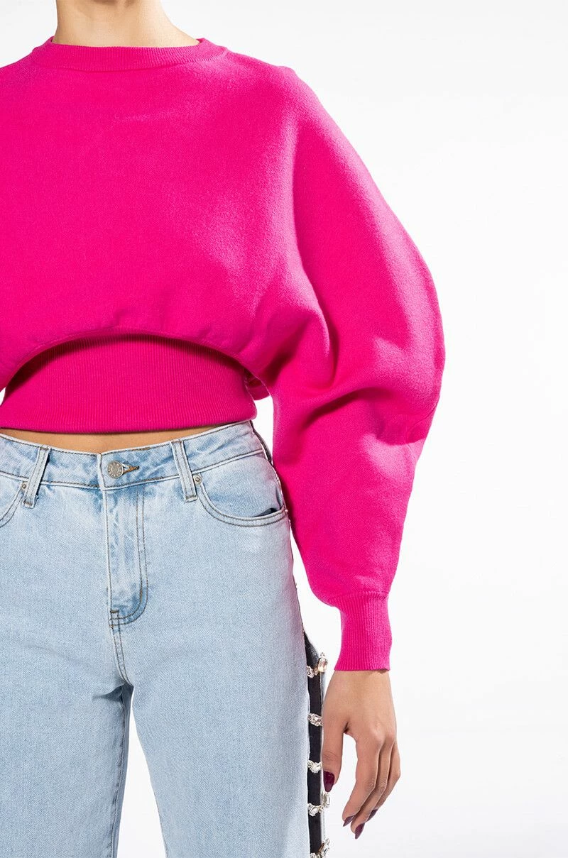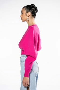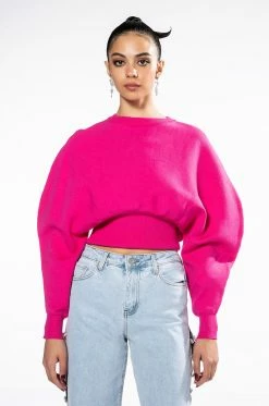 The AKIRA Label Juliet Dolman Sleeve Sweater is a soft knit top featuring a sloped shoulder design, long sleeves, a crew neckline, ribbed knit trim, and a cinched bodice. Complete your look with joggers or straight leg denim for a casual cool look.