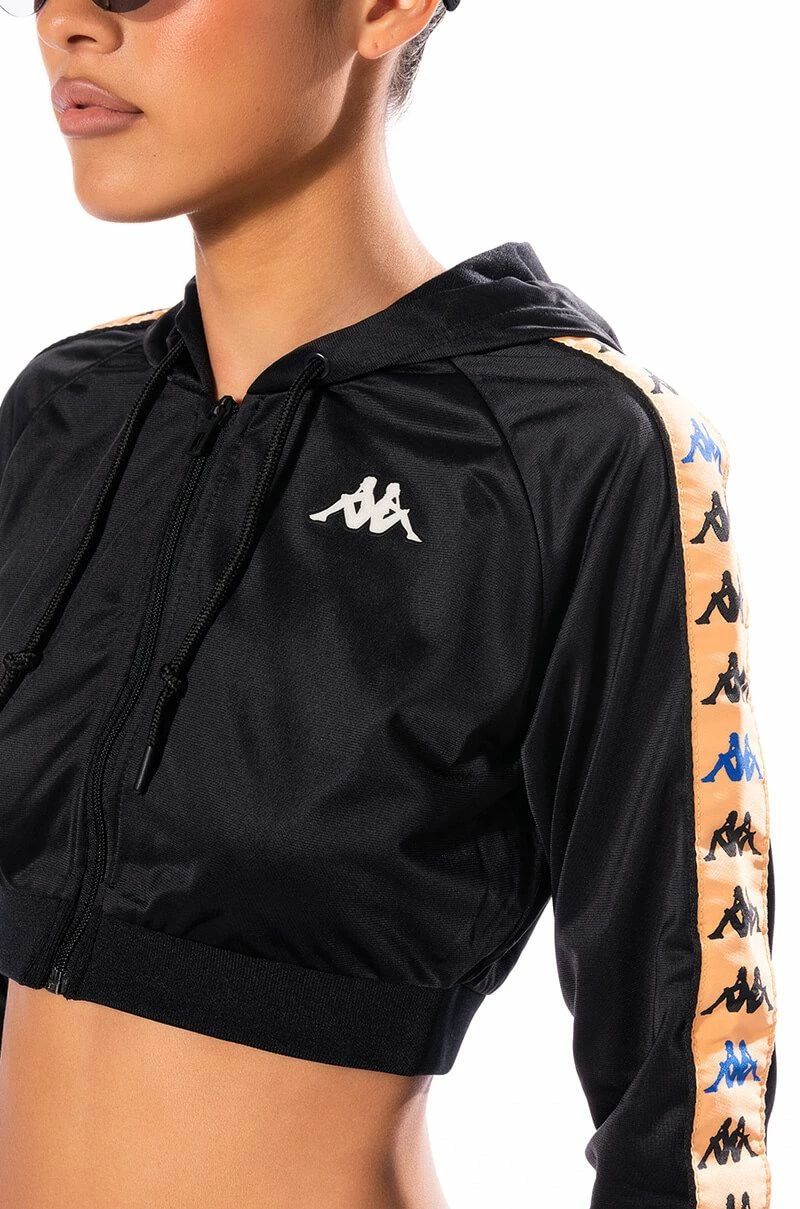 The KAPPA Cropped Zip Front Hoodie is made from a classic sweat fabrication, and is complete with a cropped length, side stripes along the sleeves with the kappa logo printed, a drawstring hood, and a front zipper closure. Pair with the coordinating KAPPA Side Trim Jogger!