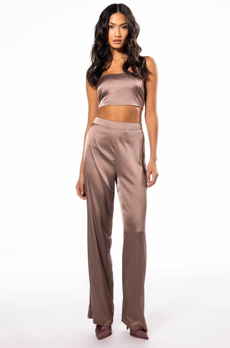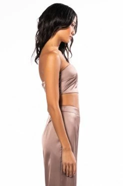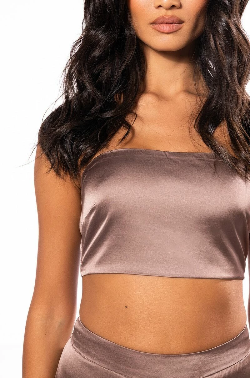 The AKIRA Label Keep It Real Bandeau is made from a slick satin fabrication and features a strapless elastic neckline, princess seam detailing, an ultra cropped silhouette, and an exposed back zipper closure. Pair this piece with the matching AKIRA Label Keep It Real Straight Leg Trousers and Keep It Real Maxi Cardigan to complete your look.