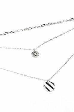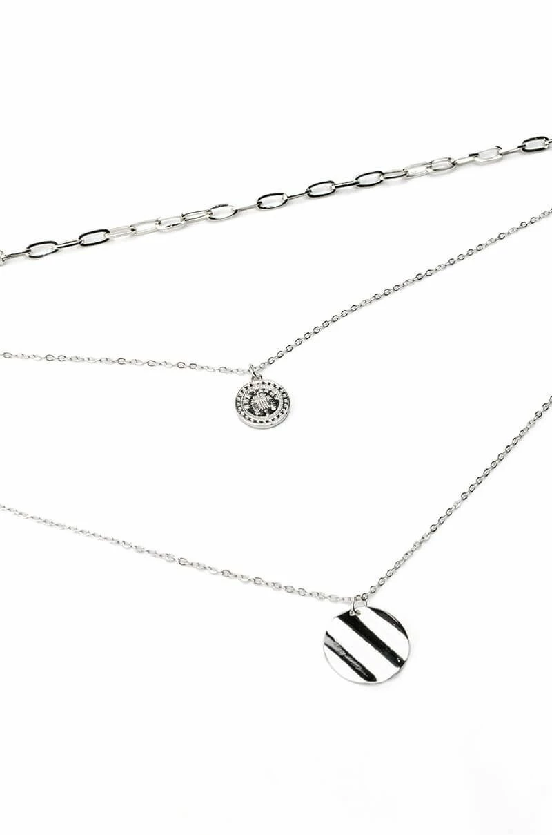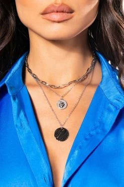 Keep your friends close to your heart and your necklace even closer. The AKIRA Label Keep My Circle Small Necklace Set is a silver metallic mid length necklace complete with three chain links of varying lengths and widths. Features circular coin accents and an adjustable lobster clasp fastening.