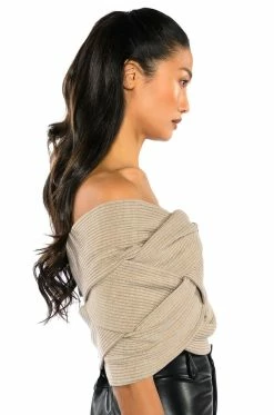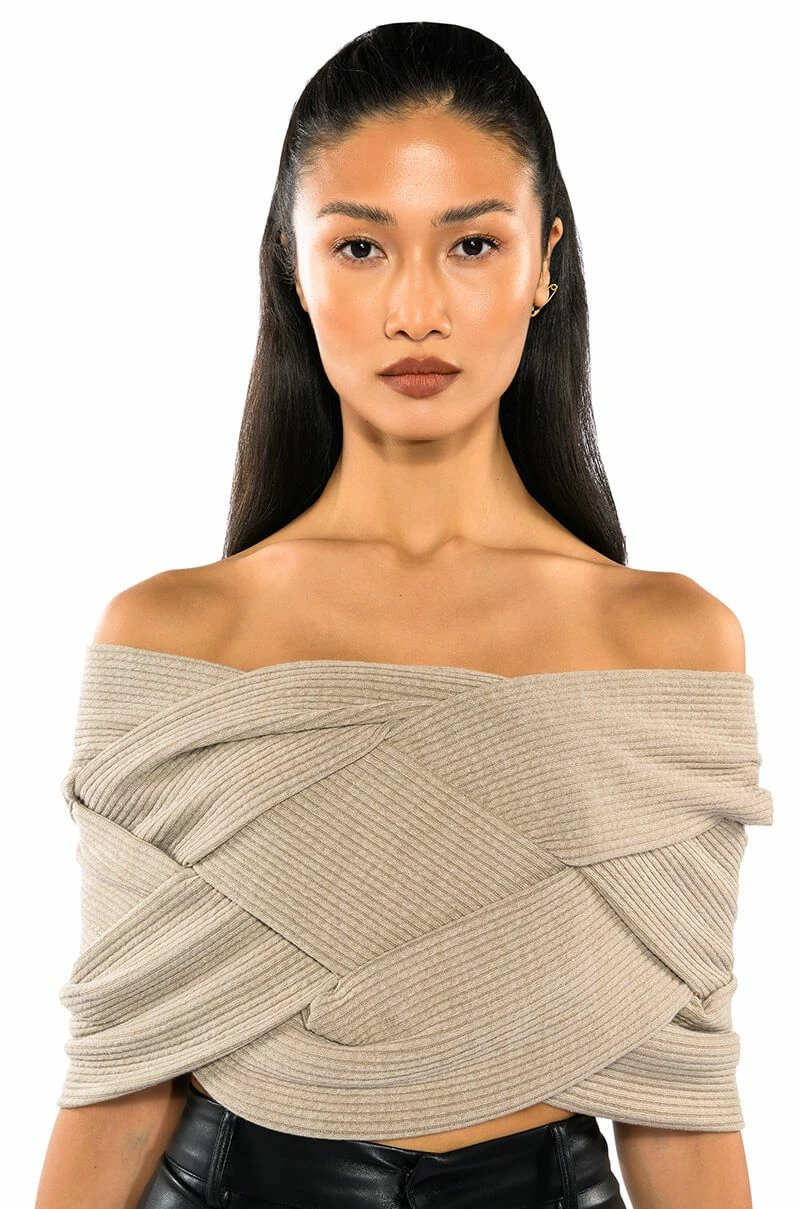 The AKIRA Label Knot Your Average Gal Strapless Knit Top is made from a soft ribbed knit fabrication and features a strapless neckline, a wide braided design, an inner bralette with elastic hems, off-shoulder, elbow-length sleeves, a cropped silhouette, and a slip-on fit. Pair this piece with wide leg bottoms and booties to complete your chic, textured look.