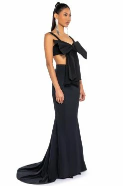 Take your date-night look to the next level with The AKIRA Label Kyle Bow Detail Bralette! This sexy, chic number is a bralette made from a smooth base fabrication, featuring ruched elastic tank straps, a large ribbon bow-tie front, and an inner lining at the cups. Complete with a shirred elastic back and a metallic silver zipper closure. Style with wide-leg dress pants and sleek stilettos for that femme fatale look.