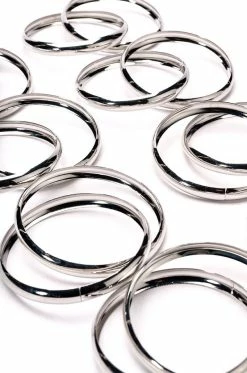Make some noise with The AKIRA Label Lets Bounce Bangle Set! This bracelet set is made from a faux silver metallic base, and features a round, circular design with 8 sets of two intertwined bangles, totaling in 16 one-size-fits-most bangles. Wear them separately or stack them to add an extra bounce to your look!