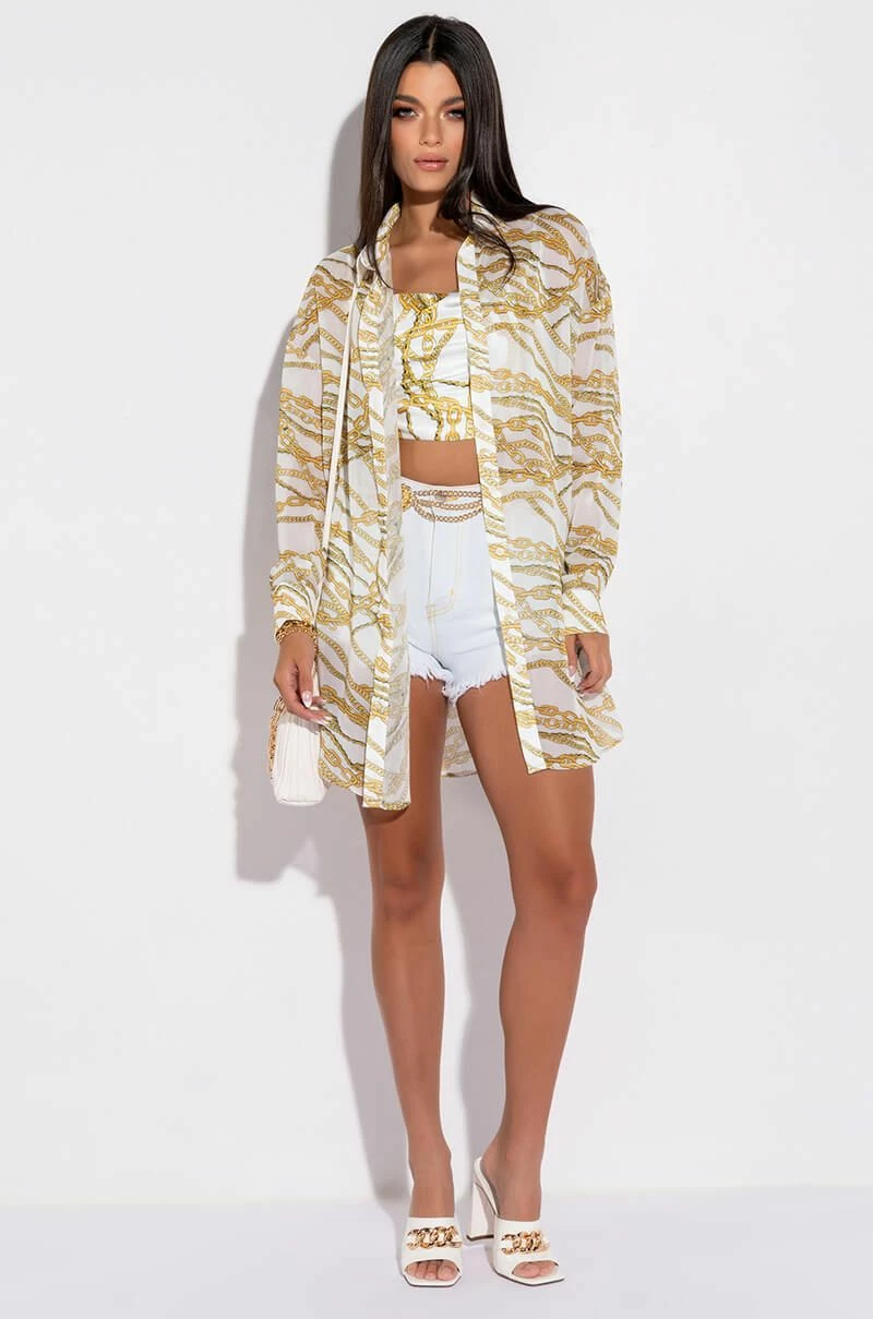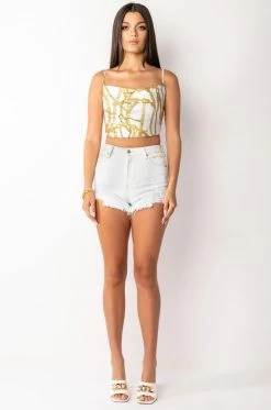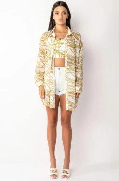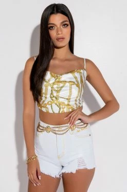 The AKIRA Label Link Up Sleeveless Cropped Satin Cowl Neck Tank is made from a luxe satin fabrication and features a graphic layered chain print, adjustable spaghetti straps, a cowl neckline, a cropped silhouette, and an exposed back zipper closure. Pair this piece with the matching AKIRA Label Link Up Oversized Chiffon Button Down to finish off your graphic look!