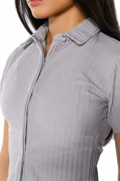 The AKIRA Label Lucy Short Sleeve Button Down is a part of an elegant 3-piece set, and is made from a pleated polyester fabrication. Complete with a foldover collar, short sleeve silhouette, cloth button down front closure, and rounded hems. Pair with the coordinating AKIRA Label Lucy High Rise Wide Leg Pant, Lucy Bralette, and booties for a chic, executive look.