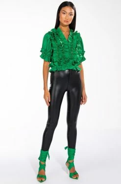 – Main Fabric: 100% PU, Lining: 98% Polyester 2% Spandex