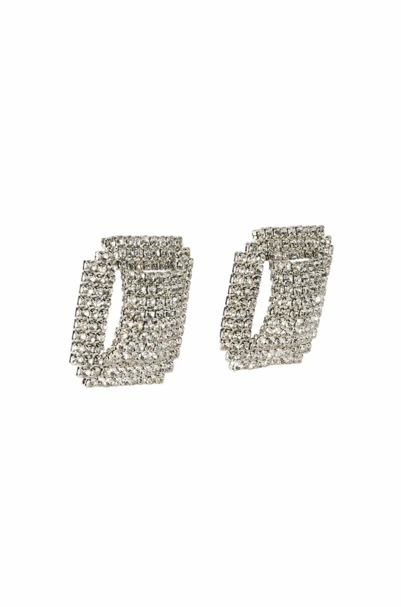 Get more bling for your buck with The AKIRA Label Made Of Money Embellished Statement Studs. These oversized, square stud earrings feature a silver metallic base, subtle, dimensional cut outs, and all-over rhinestone pave detailing. Complete with a post back-style closure.