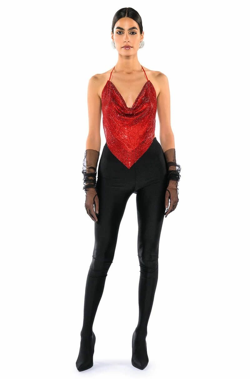 Pick up the phone, baby! The AKIRA Label Miami On The Line Rhinestone Chainmail top is a handkerchief-style halter top featuring a smooth satin base, rhinestone mesh overlay, a tie back halter neckline, and an open back silhouette. Complete with a cropped cut and an additional tie in back to keep you secure. Pair this top with distressed denim and strappy sandals to complete your look.