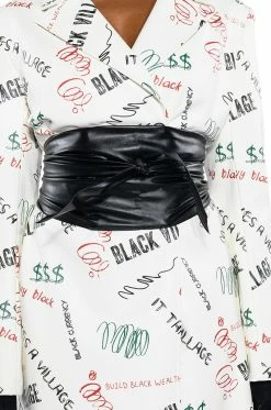 The AKIRA Label Moves Like Jagger Wrap Belt is a faux leather wrap belt that is wide in the middle and gets thinner towards the ends.
