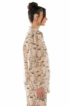 New Year, New The AKIRA Label New Society Printed Button Down Top! This top is part of a chic, two-piece set made of a lightweight base fabric with an all over abstract line art print design. Complete with a pointed collar, a button down front closure, long sleeves with buttoned cuffs, a front breast pocket, and an oversized silhouette. Pair with the matching bottoms, The AKIRA Label New Society Drawstring Pants, and heeled boots for an easy, effortless look.