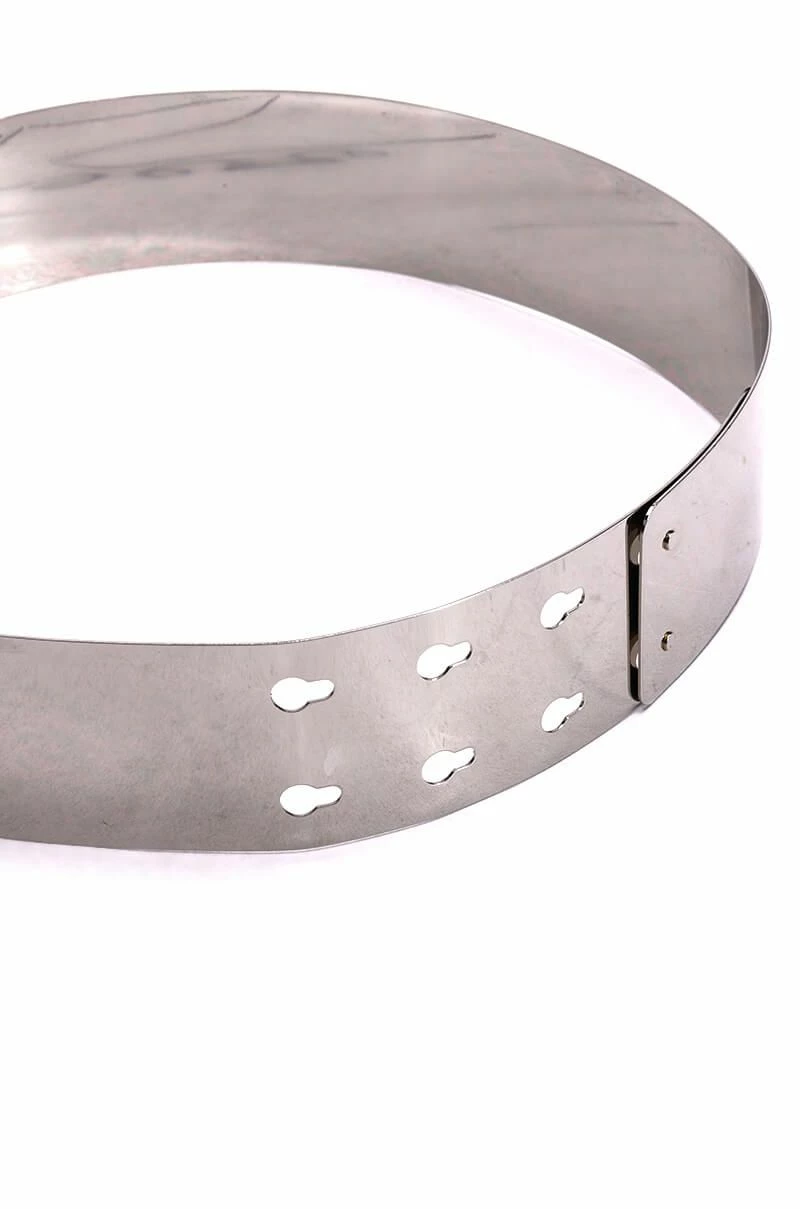 The AKIRA Label No Holding Back Metallic Waist Belt is made from a curved faux silver metallic base complete with an adjustable pop button closure. Sits at the waist for a form-flattering look.