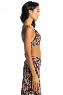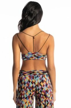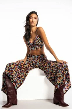 The AKIRA Label No Promises Bralette Top is made from a slick, pleated fabrication and features a groovy, multicolor print, thin elastic T-back straps, a plunging neckline, padded cups, and a cropped silhouette. Pair this piece with the matching AKIRA Label No Promises Palazzo Pants and stiletto booties to finish off your 70’s-inspired look.