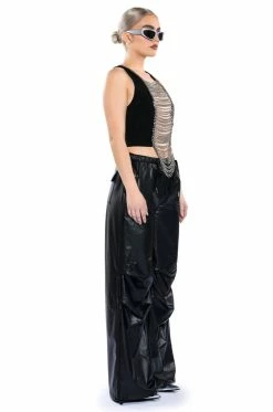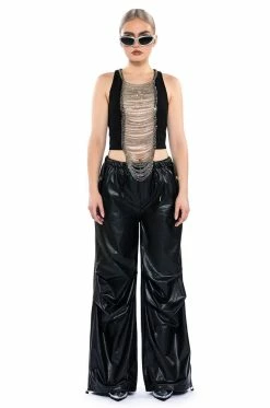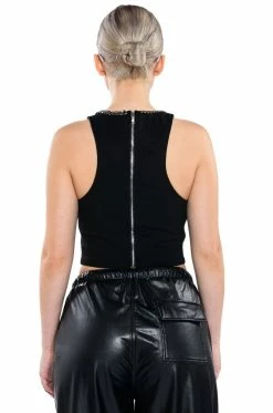 The AKIRA Label Nova Layered Chain Tank Top is made from a slick fabrication and features a high, rounded neckline with curb chain link trim, a sleeveless design, a sexy sheer front with mesh paneling and cascading curb chain links, polyester lining, and a cropped silhouette. Complete with an exposed back zipper closure. Pair this piece with fitted leggings, a crop moto jacket, and platform booties to finish off your fierce look.