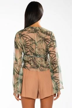 The AKIRA Label One With Nature Long Sleeve Tie Front Chiffon Blouse is made from a sheer chiffon fabrication and features a tropical leaf print, long, a plunging neckline with tie detail, long, flowy sleeves, a cropped silhouette, and a tulip-style front hem. Pair this tropic piece with wide leg bottoms and strappy sandals to finish off your vacay-ready look!