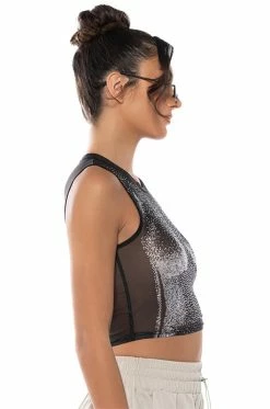 She’s so lucky, she’s a star, it’s The AKIRA Label Out Of This Galaxy Mesh Top! Made from a stretchy, mesh base fabrication, this glimmering number features an abstract nude print design with gorgeous rhinestone embellished details. Complete with a crew neck, a sleeveless silhouette and a cropped top design. Pair with relaxed denim cargos, a moto jacket, and booties, for a finished lewk!