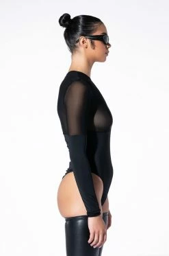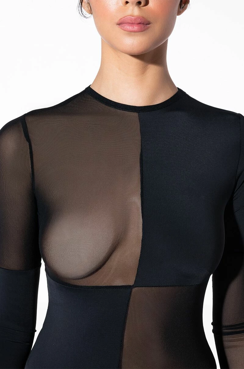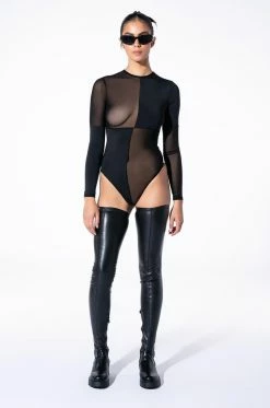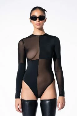 Win it all with The PAXTON Checkmate Colorblocked Long Sleeve Mesh Bodysuit! This sexy one piece is made from a sheer mesh fabrication base and features a high, rounded neckline, opaque, checkered paneling along the body and sleeves, and a cheeky bottom fit. Complete with a snap gusset closure.