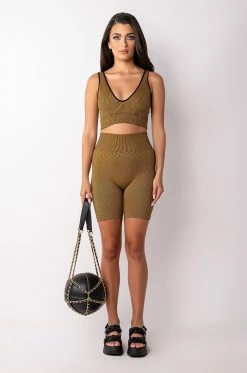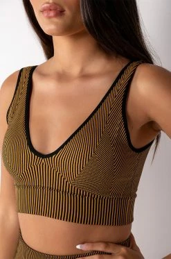 The Paxton Green Light V Neck Bralette is made from a soft knit fabrication and features striped stitch patterning, a rounded V neckline, wide tank straps, padded cups, contrast trim along the neckline and straps, and a wide elastic hem. Pair this piece with the matching Paxton Green Light Biker Shorts and chunky sneakers to finish off your fresh athleisure look.