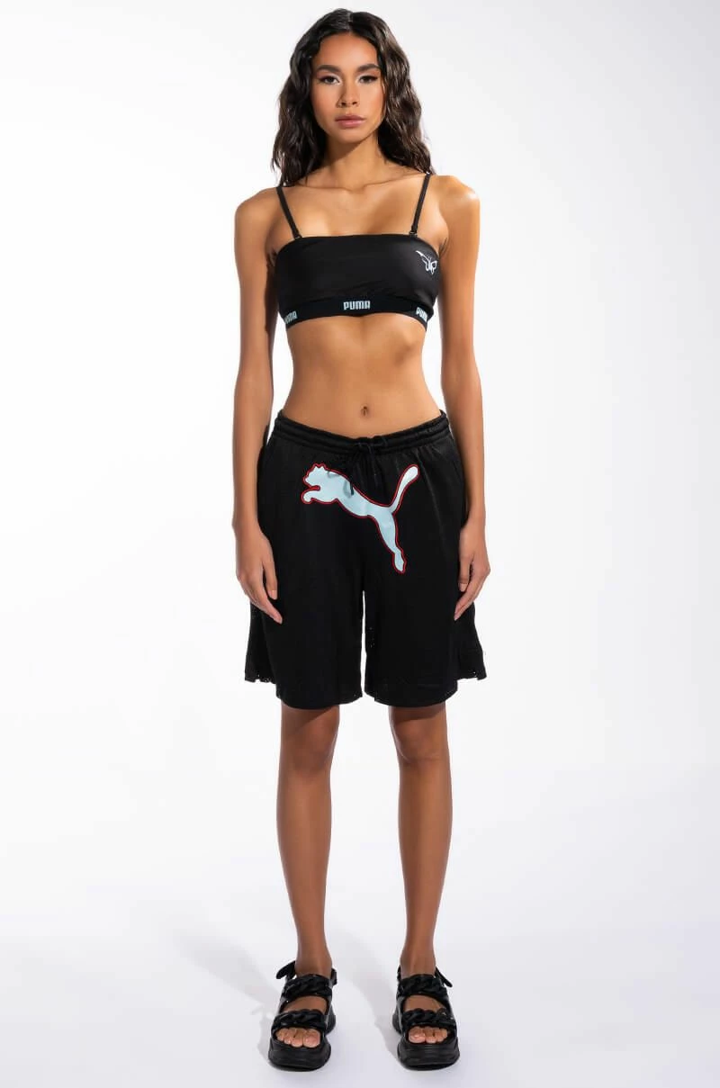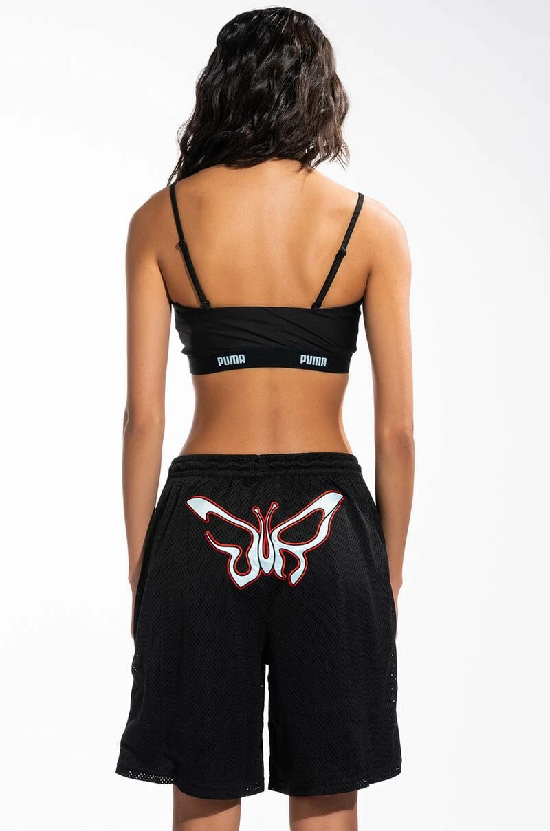 Athleisure gets a pop star update with The PUMA x Dua Lipa Bralette. This smooth knit bra top features thin, adjustable spaghetti straps, padded bust cups, a branded PUMA hemline, and a cropped silhouette. Complete with an embroidered butterfly accent on the left chest and detachable alternate baby blue tank straps. Pair this piece with the coordinating PUMA x Dua Lipa Basketball Shorts for a complete look.