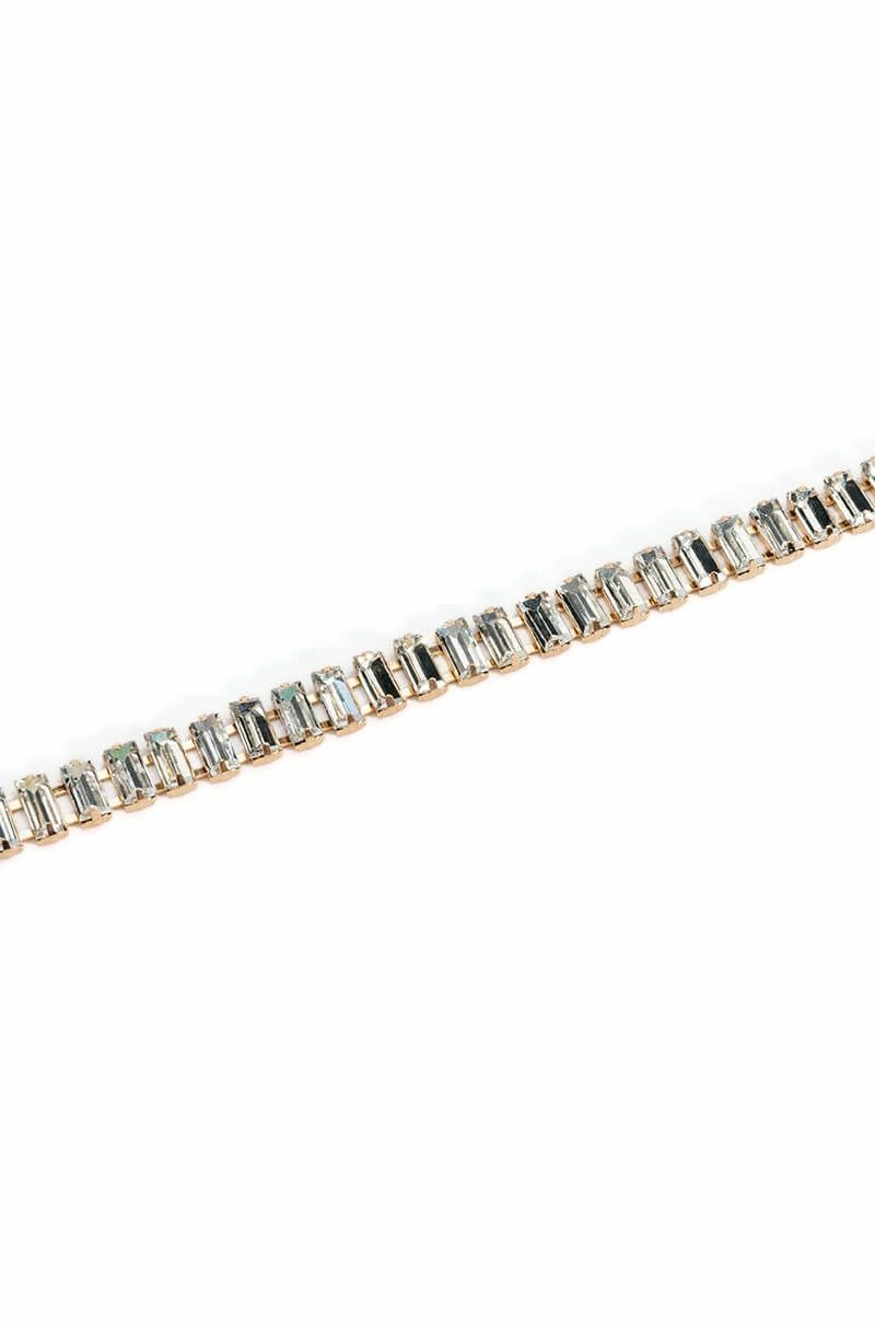The AKIRA Label Respect The Lifestyle Rhinestone Choker is made from a faux gold metal base and features a choker silhouette with linked rhinestone gems and an adjustable lobster claw closure.