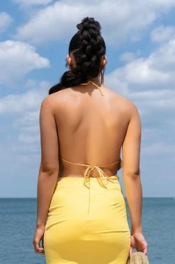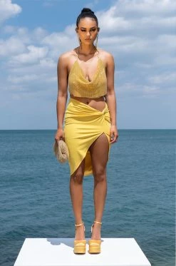 Shout out to the bad gal! Live your Carribean queen dreams in The AKIRA Label Riri Cowl Neck Rhinestone Bralette. This sparkling rhinestone mesh piece features a satin inner lining, a tie back halter design, a cowl neckline, and a tie back waist with open back. Complete with a cropped cut. Pair this piece with leather pants for your next festival look!