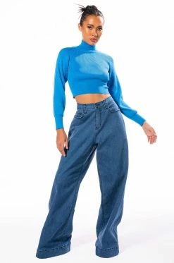 The AKIRA Label Sage Cropped Turtleneck Sweater is made from a soft and stretchy ribbed knit fabrication and features a turtleneck silhouette, empire waist stitching, long sleeves with wide cuffs, and a cropped length. Pair this cozy classic with wide leg jeans and booties to finish off your chic seasonal look.