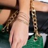 The AKIRA Label Shame On Me CZ Studs are a set of two gold plated earrings featuring cubic zirconia gemstones: one floral stud and one long vertical dangle earring. Both are complete with post back style closures.