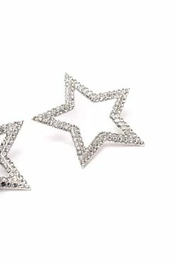 The AKIRA Label Star Of The Show Embellished Earrings are made from a faux silver metal base and feature large open star designs with rhinestone embellishments. Complete with post back-style closures.