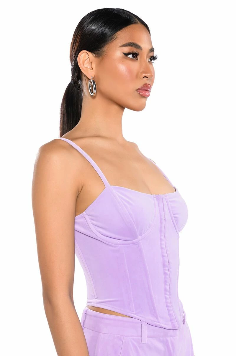 Set the trends in The AKIRA Label Stylist Velvet Corset Top! This chic piece is made from a soft velvet fabrication and features adjustable spaghetti straps, a sweetheart neckline with underbust wiring, boning for structure, a cropped silhouette, a pointed hem, and hook and eye front closures. Pair this piece with the matching AKIRA Label Stylist Wide Leg Velvet Cargo Pants to complete your stylish look.