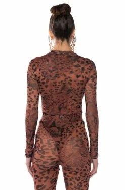 The AKIRA Label Wild Cheetah Print Longsleeve Bodysuit is part of a sheer, stretchy mesh base two-piece set featuring a sexy, cheetah graphic print design, a double lined mesh structure, mock neck, long sleeves, bodycon fit, and a snap gusset bottom closure. Style with the matching bottoms, The AKIRA Label Wild Cheetah Print Leggings!